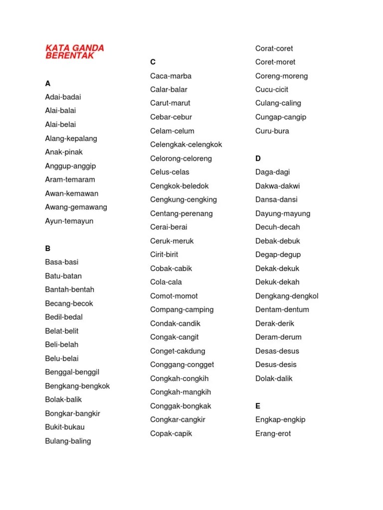 Contoh Kata Ganda Berentak Materi Pelajaran 4