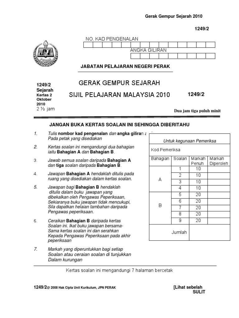 Gerak Gempur Sejarah Kertas 2 Spm 2010