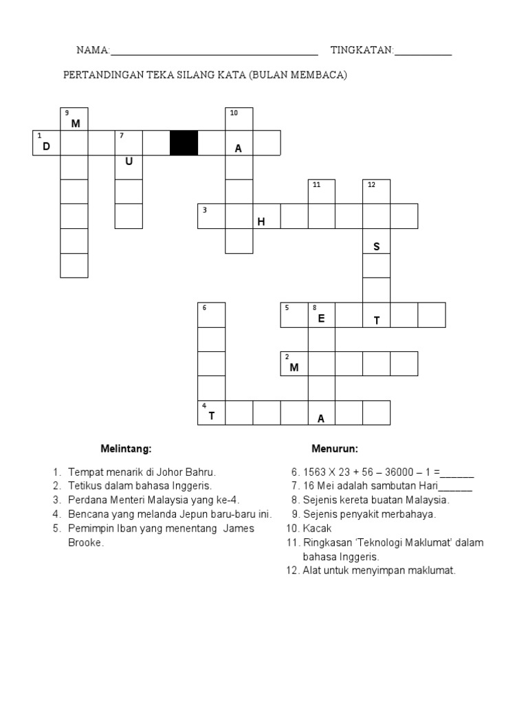 Contoh Teka Silang Kata Dengan Jawapan Yang Sangat Terhebat Untuk Murid Dapatkan Pekeliling Terbaru Kerajaan