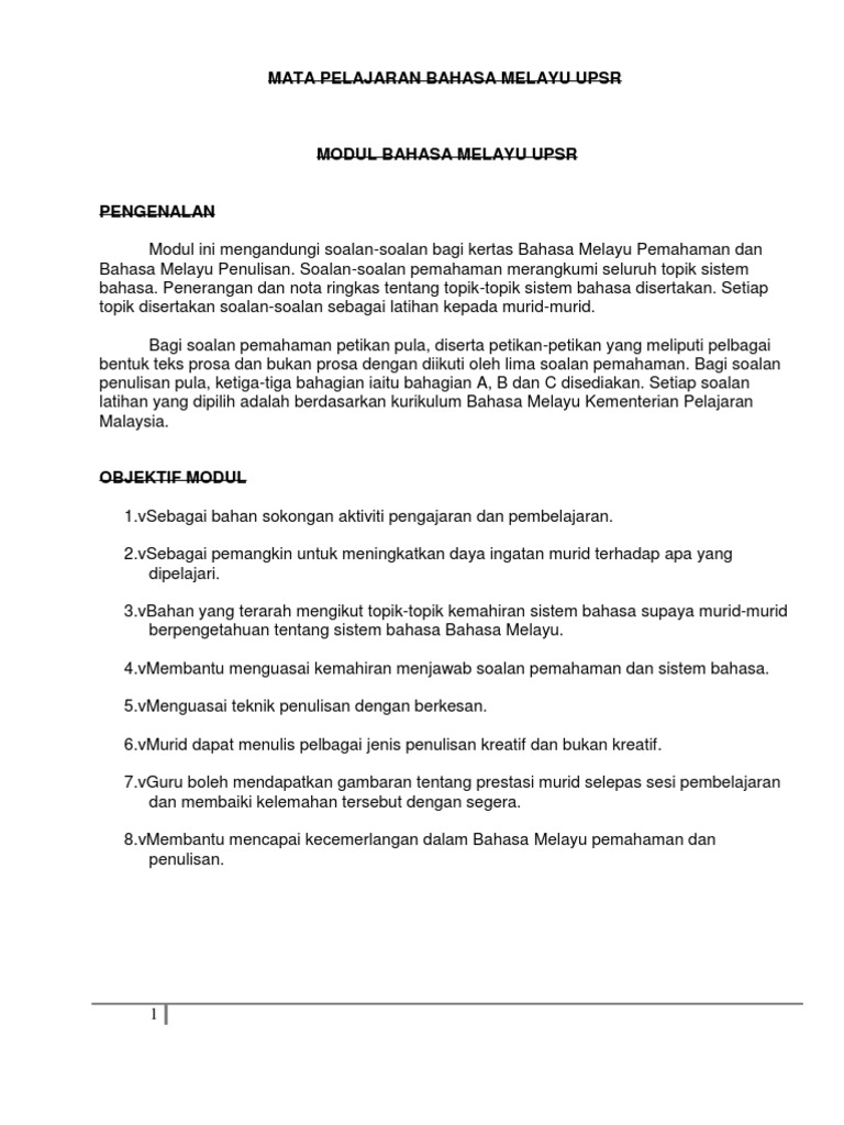Contoh Soalan Upsr Bahasa Melayu Pemahaman Kerja Kosk