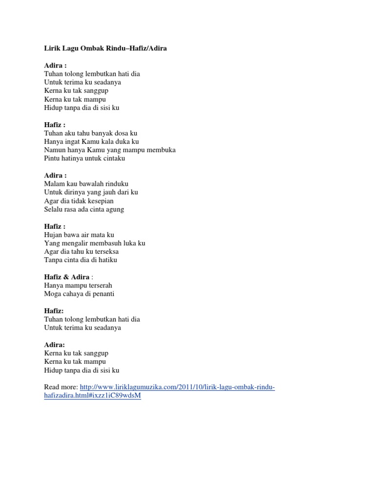 Lirik Lagu Ombak Rindu Hafiz Adira Adira Hafizadira Html Ixzz1ic89wdsm