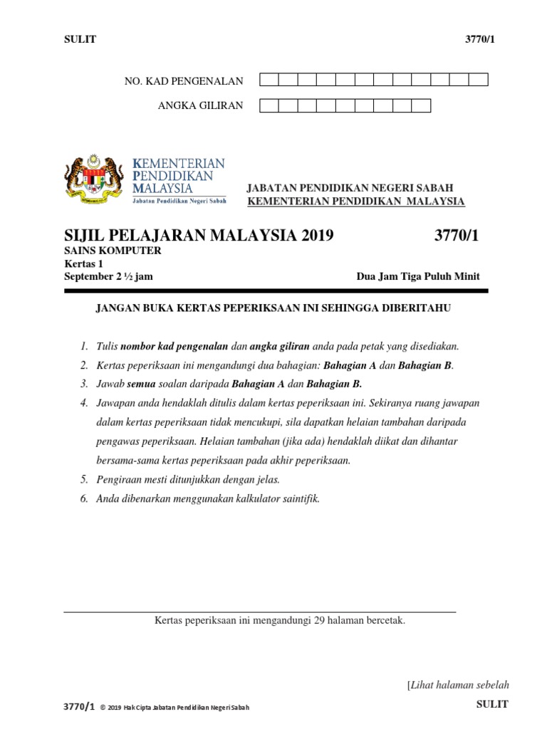 29 Sains Komputer Trial Spm Jpn Sabah 2019