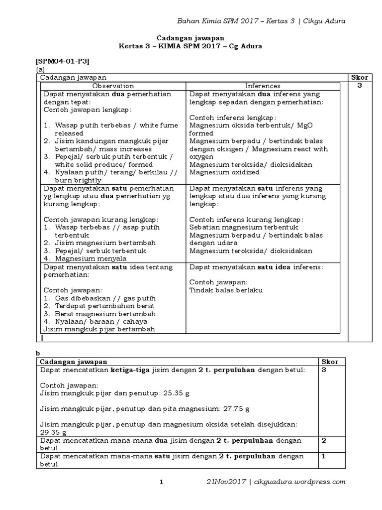 Skema Jawapan Kimia Kertas 2 Spm 2017
