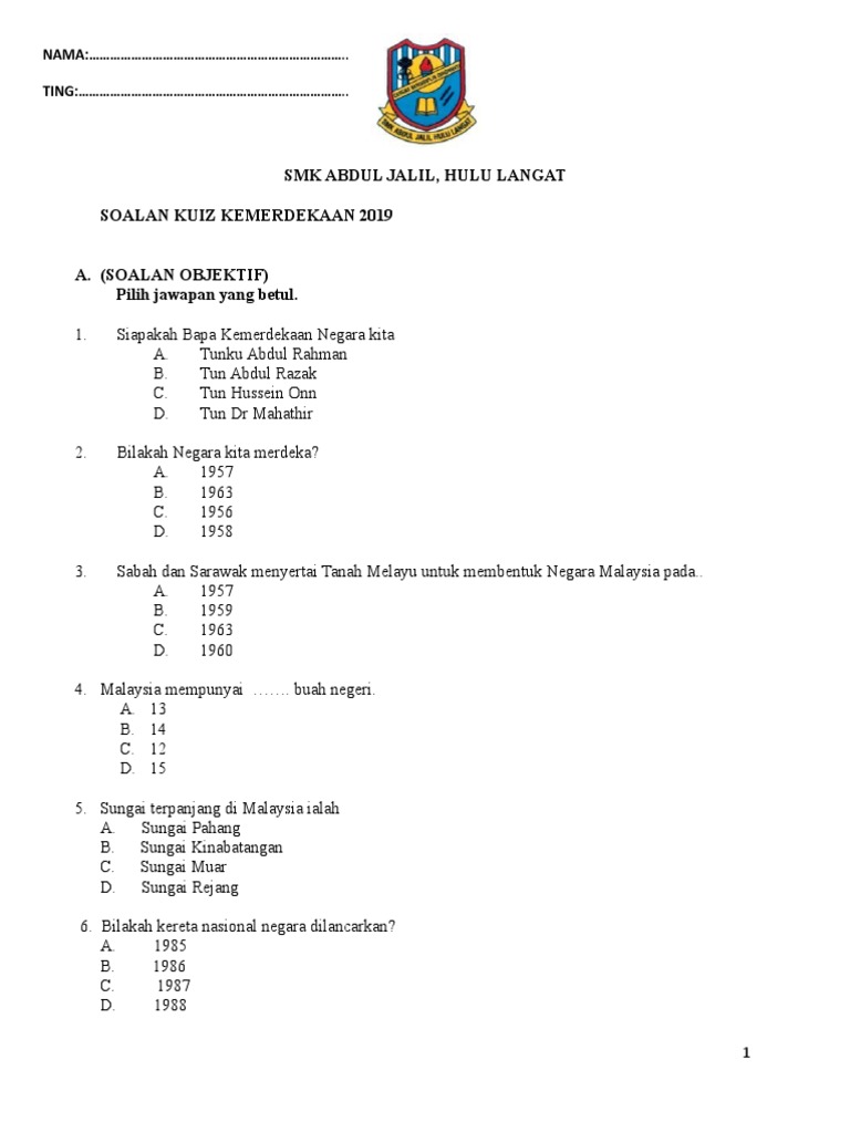 Contoh Soalan Kuiz Kemerdekaan Dan Jawapan Selangor L