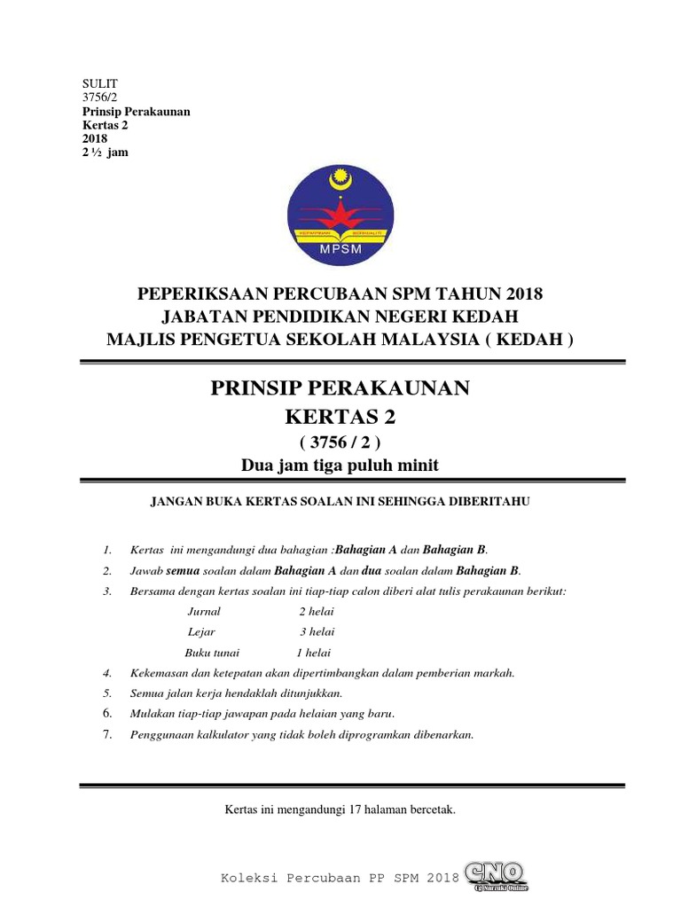 Soalan Percubaan Spm 2018 Negeri Kedah Subjek Prinsip Perakaunan Cikgu Ayu