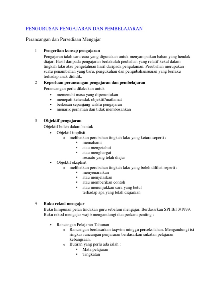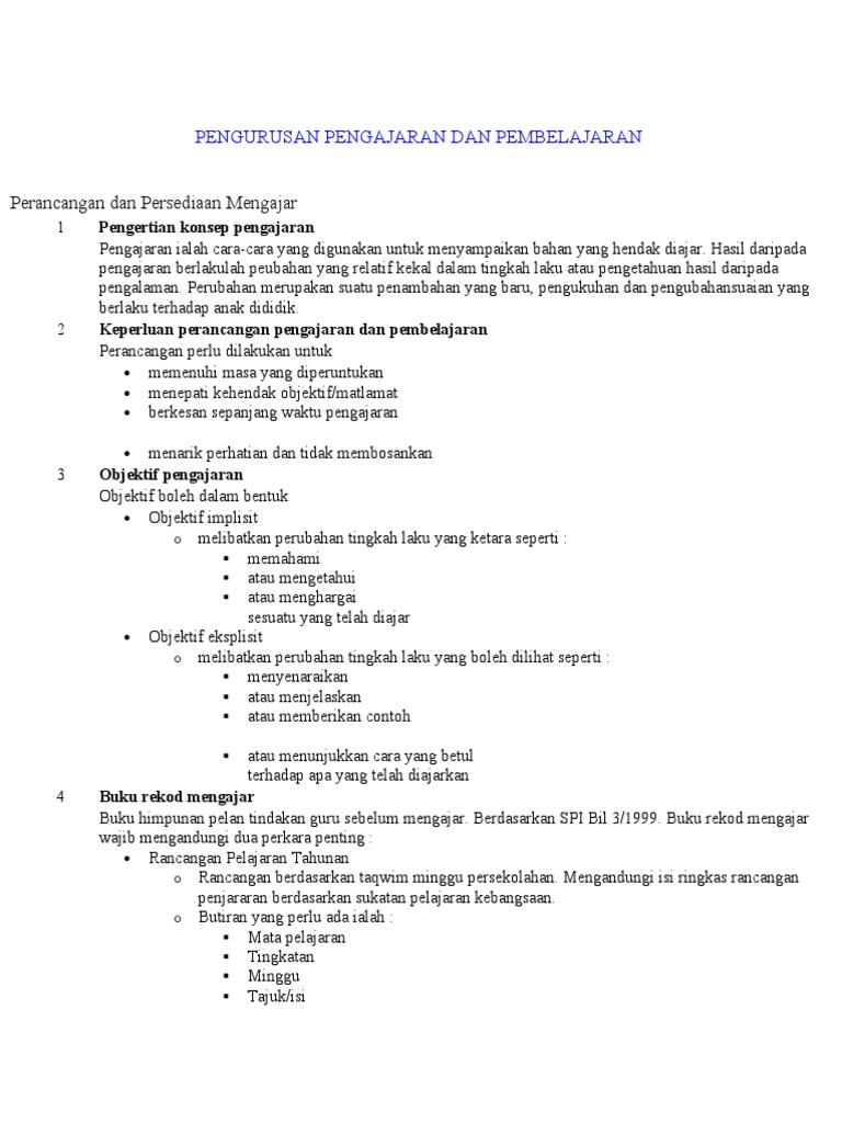 Perancangan Dan Persediaan Mengajar Pengurusan Pengajaran Dan Pembelajaran