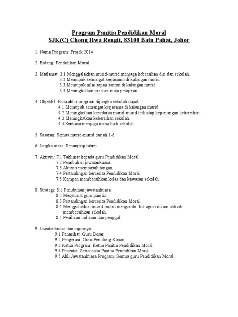 Doc Perancangan Program Panitia Pendidikan Moral 2013 Teresa Kutik Academia Edu