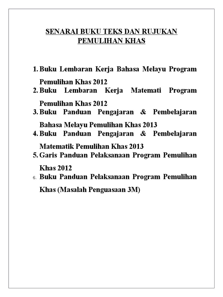 Senarai Buku Teks Dan Rujukan Pemulihan Khas
