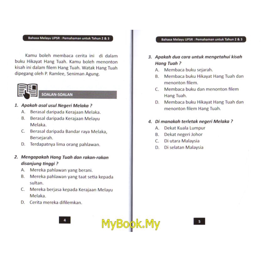 Myb Buku Bahasa Melayu Upsr Pemahaman Untuk Tahun 2 3 Sri Saujana Marketing Shopee Singapore