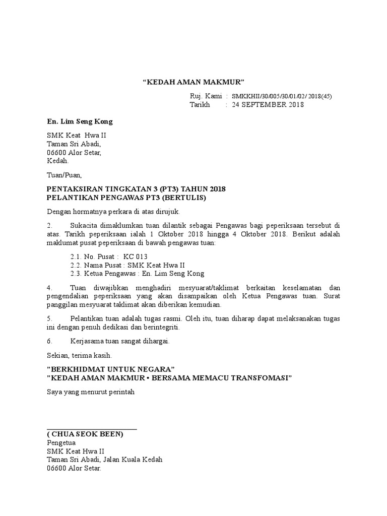 Surat Lantikan Ketua Pengawas Pt3 2018 Doc