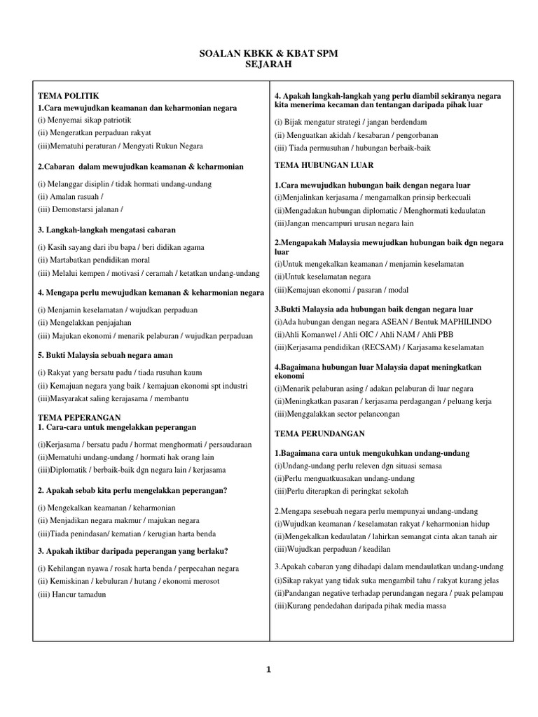 Spm Soalan Kbat Sejarah Pdf Powered By Andrew Choo Soalan Kbat Sejarah Spm Mengikut Bab F2 Bertukar Tukar Teknologi Dengan Negara Yang Lebih Maju H2a Course Hero
