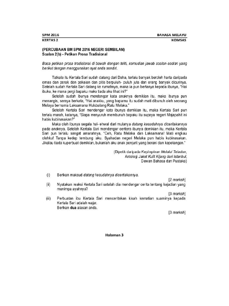 Koleksi Soalan Komsas 2 C Percubaan Spm 2016 Se Malaysia